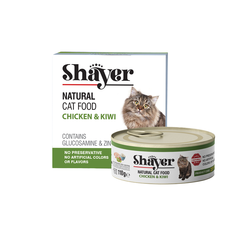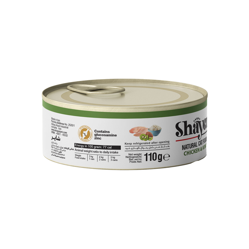 کنسرو غذای گربه بافت طبیعی و نچرال شایر با طعم مرغ و کیوی 110 گرمی مدل Shayer Natural with Chicken & Kiwi مناسب همه نژادهای گربه تولید شده است. یکی از مهمترین بخش های نگهداری از حیوانات خانگی تغذیه درست آنها می باشد. شما به عنوان فردی که می خواهید یکی از این حیوانات را به سرپرستی بگیرید باید اشراف کامل بر عادات و نیازهای غذایی آنها داشته باشید. این امر می تواند به تغذیه بهتر او کمک بسیاری کند.